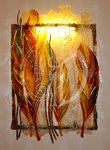 Кованый светильник со стекломхудожественная ковкаКованый светильник состоит из кованой рамы и стекла, выполненным в технике "фьюзинг". На ковку нанесена художественная покраска, состоящей из нескольких цветов. Кованый светильник выполнен на тему "осень". |